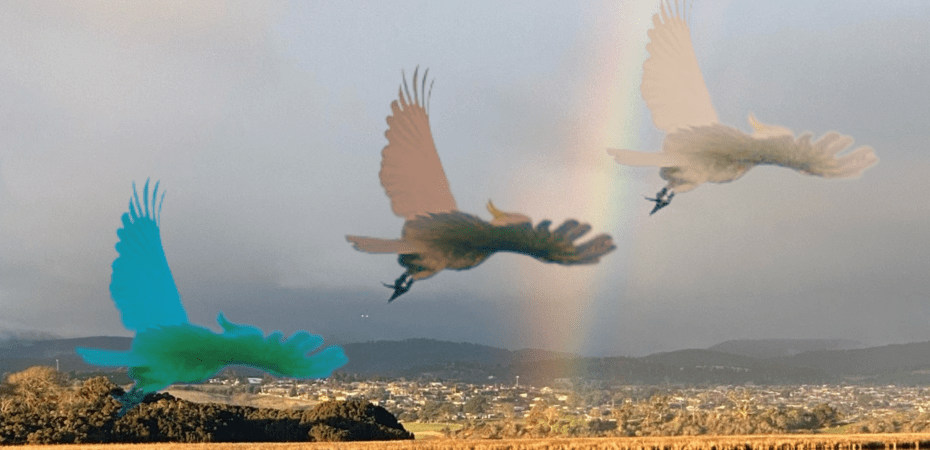 A smoky morning in Sydney doesn’t put off a cockatoo and a kookaburra from sharing a moment. (NOT taken with iPhone 11 Pro Max – it was charging.)
