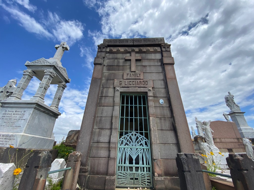 Some listed descendants in this Australian crypt had opted to remove the double cc for a g, no doubt an Australian simplification of lengthy lyrical Italian names. It was a common occurrence at Ellis Island, too. Another link to another world.