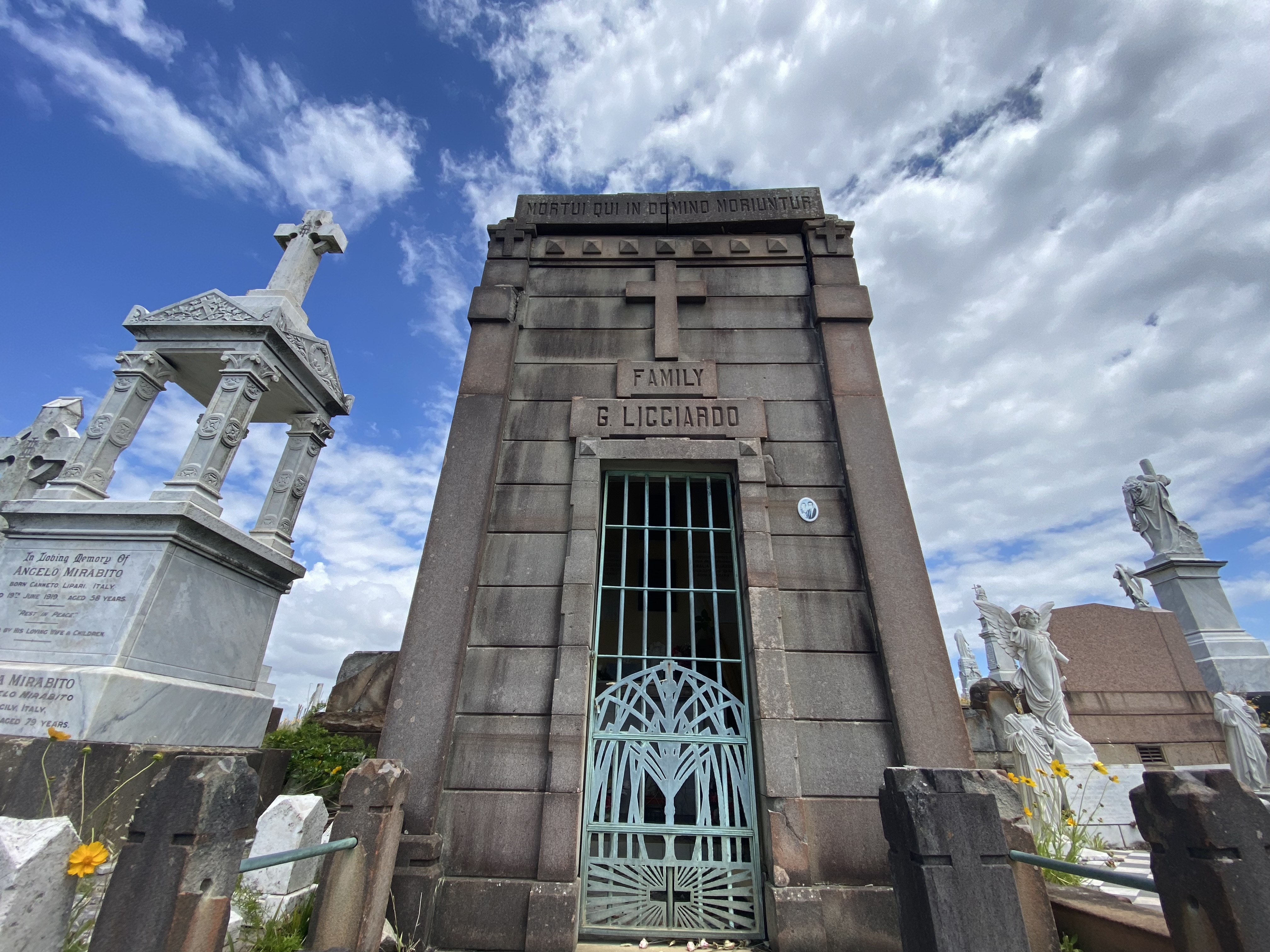 Some listed descendants in this Australian crypt had opted to remove the double cc for a g, no doubt an Australian simplification of lengthy lyrical Italian names. It was a common occurrence at Ellis Island, too. Another link to another world.